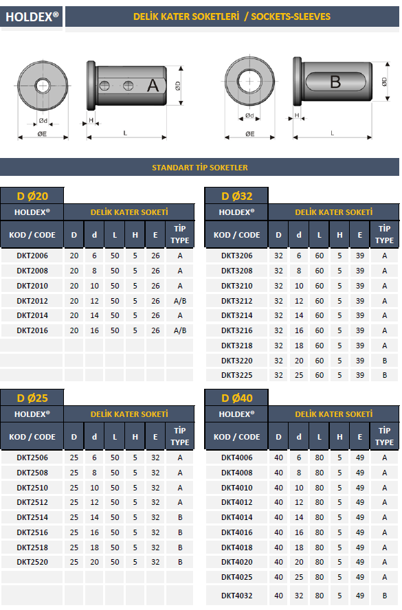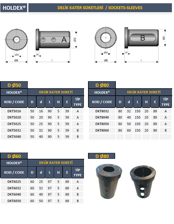 - DKT - DELİK KATER TUTUCU SOKETLER / REDÜKSİYON KOVANLARI